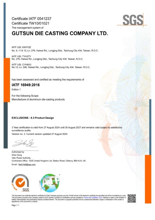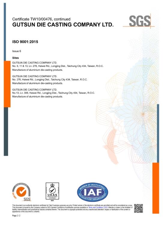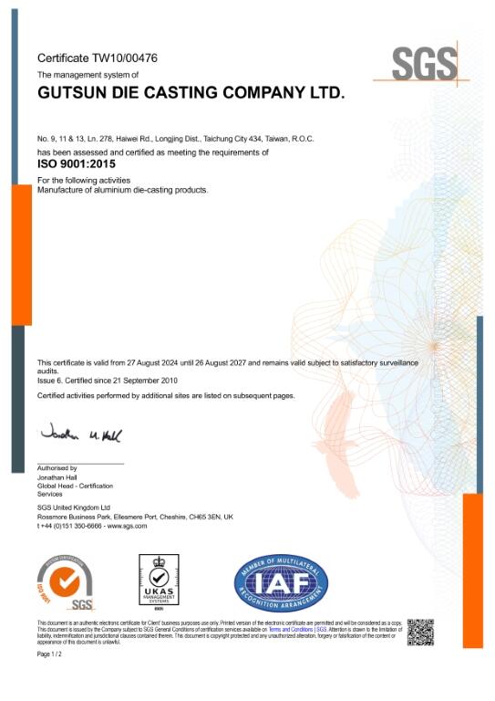 and ISO 9001:2015, IATF 16949:2016 (automotive-related products), AS 9100D (aerospace industry) quality management system certified, over 85% of our products are exported worldwide, Gutsun Die Casting has built long-term partnerships with well-reputed companies, and our excellent quality has been highly recognized.