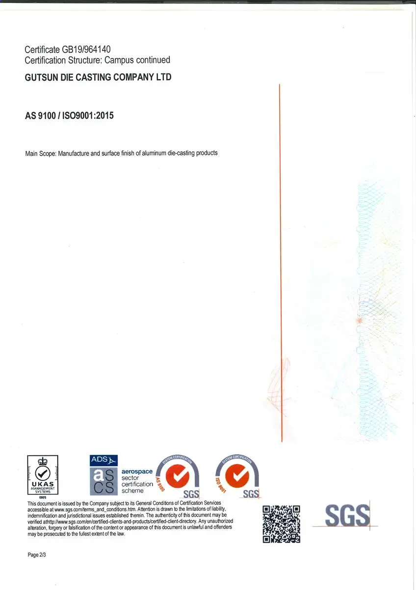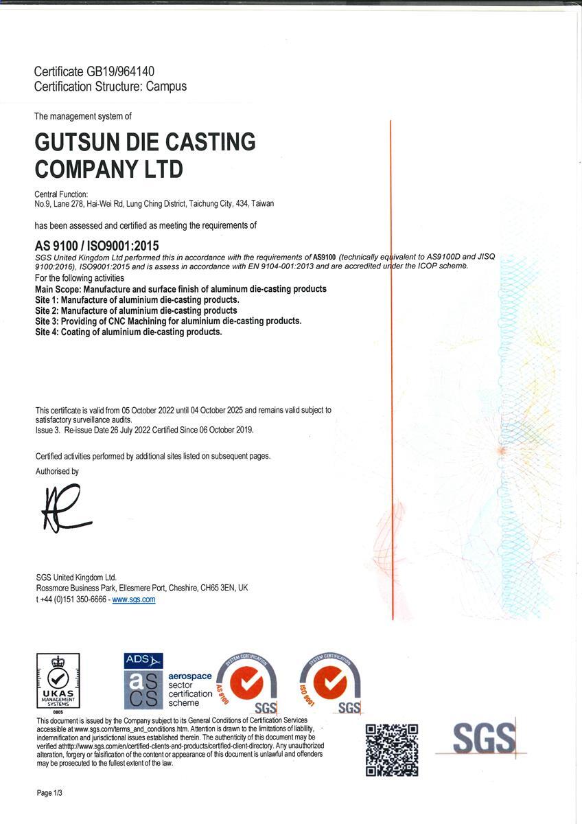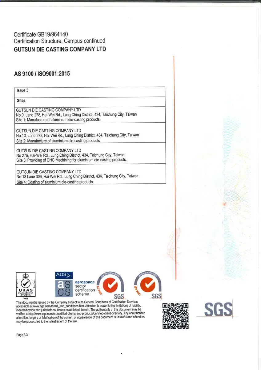 According to the different requirements of each industry, we have passed the ISO 9001:2015, International Automotive Quality Management System IATF 16949:2016, and Aerospace Quality Management System AS 9100D certifications to provide clients with high-quality and stable aluminum alloy die-casting products, enhancing customer satisfaction