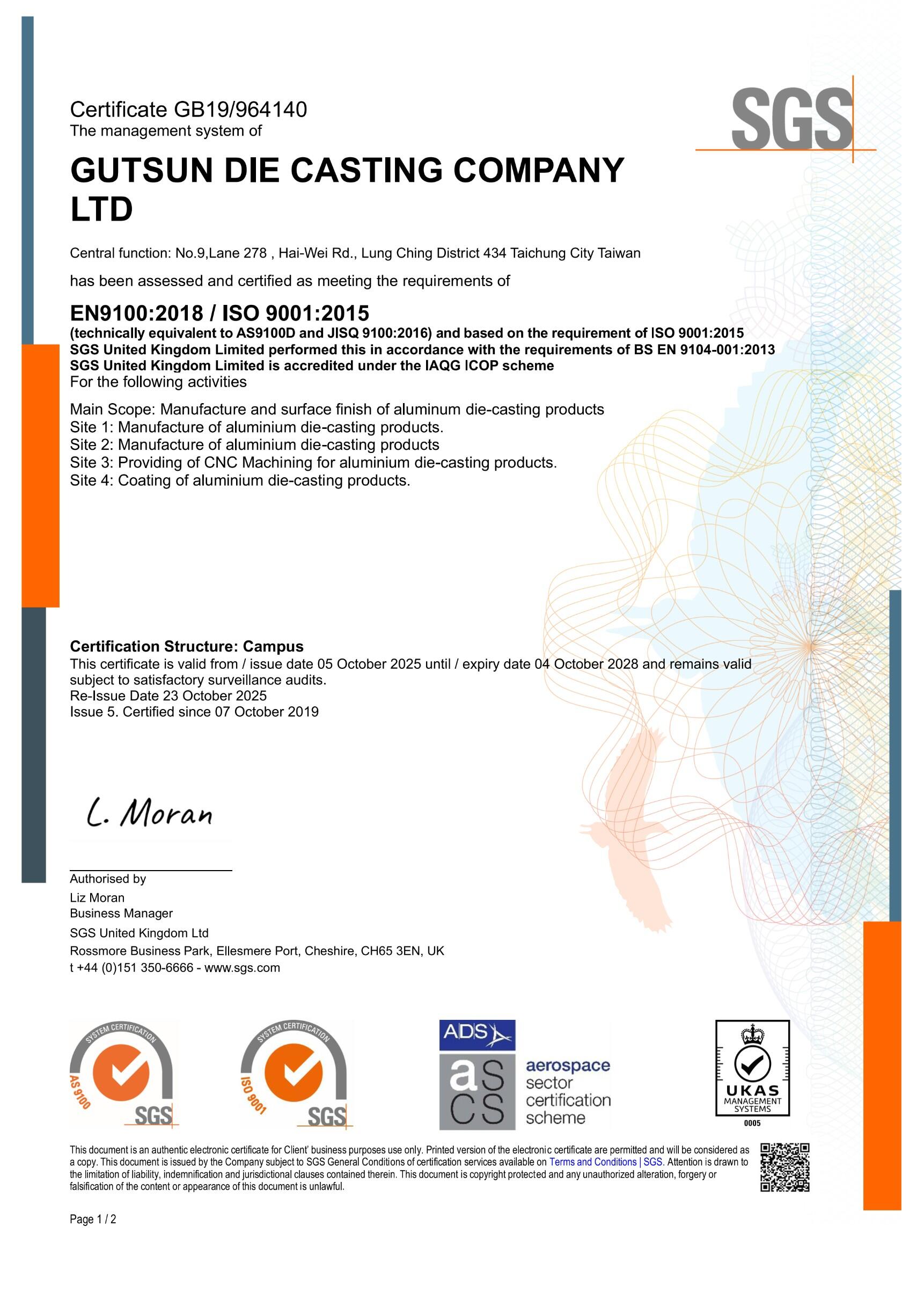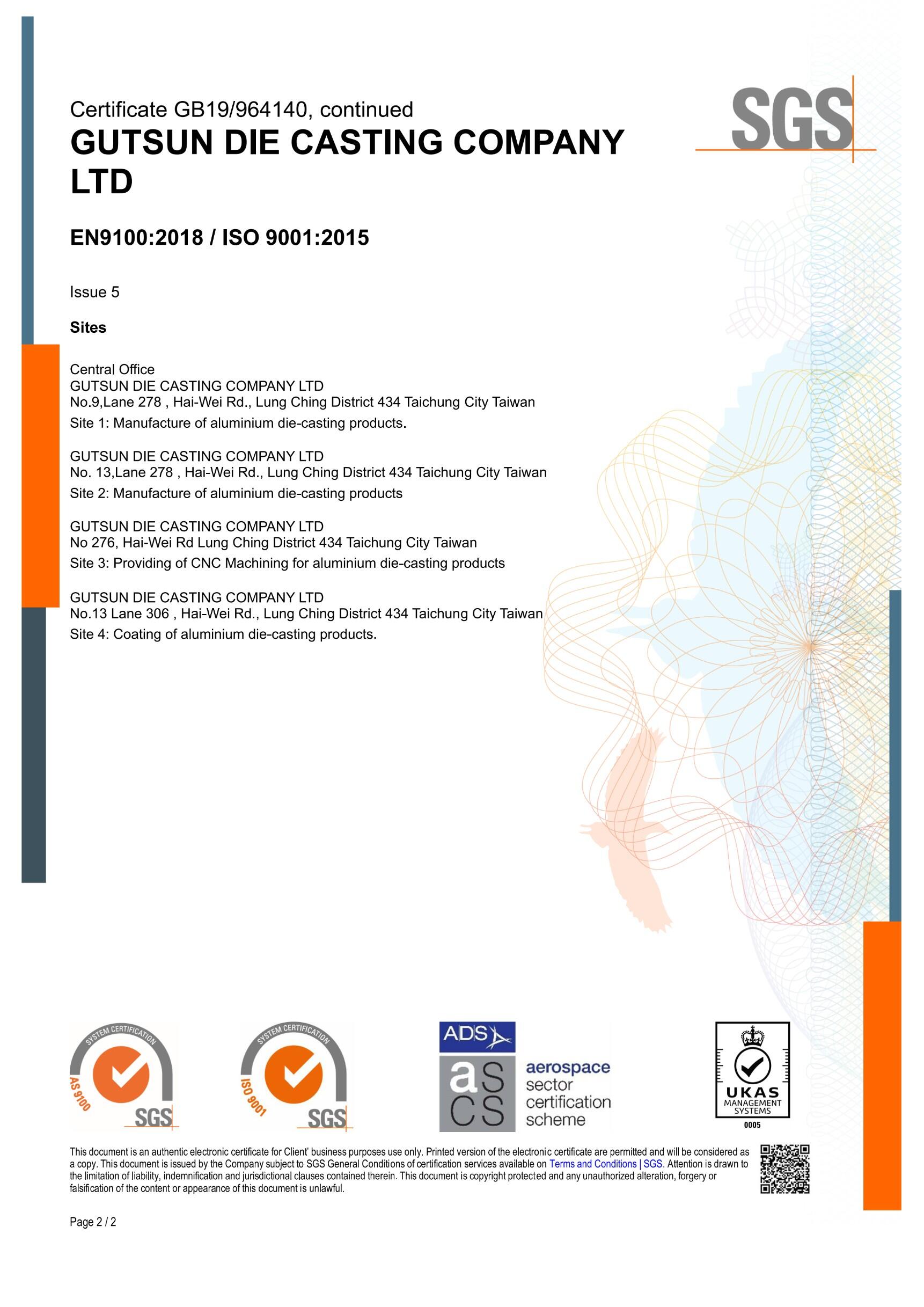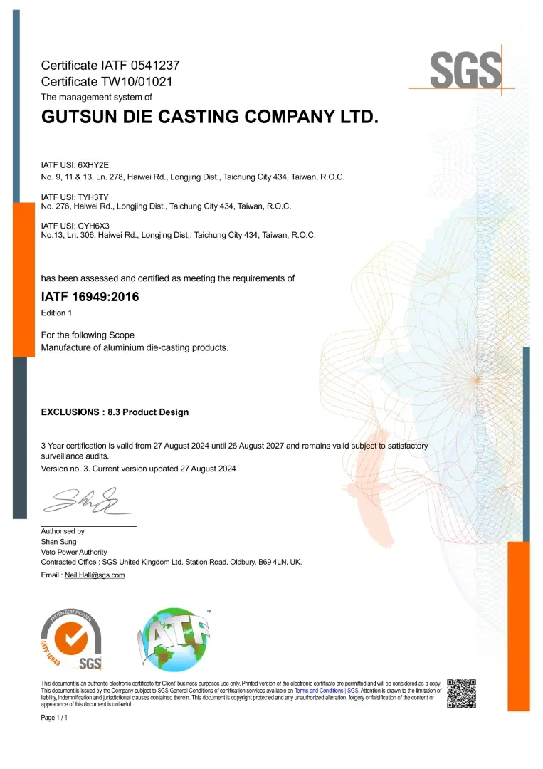 According to the different requirements of each industry, we have passed the ISO 9001:2015, International Automotive Quality Management System IATF 16949:2016, and Aerospace Quality Management System EN 9100D certifications to provide clients with high-quality and stable aluminum alloy die-casting products, enhancing customer satisfaction.